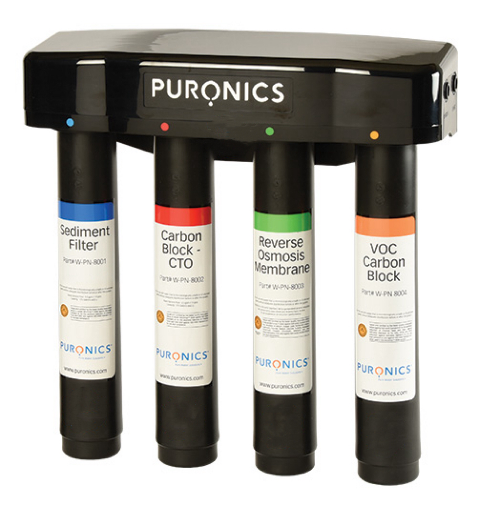 The Puronics® Micromax™ 8500 drinking water system is designed with advanced filtration technology for the ultimate protection and great tasting crystal clear water. This 5-stage system effectively reduces the majority of contaminants such as pharmaceuticals, PFAS (potentially toxic chemicals), chlorine, dissolved metals, lead, waterborne cysts, and others that may be present in your water supply. The simple design fits easily under any kitchen sink. The Micromax™ 8500 will assure your family will benefit from the reduced risks associated with emerging manmade and other contaminants that may be in water supplies.